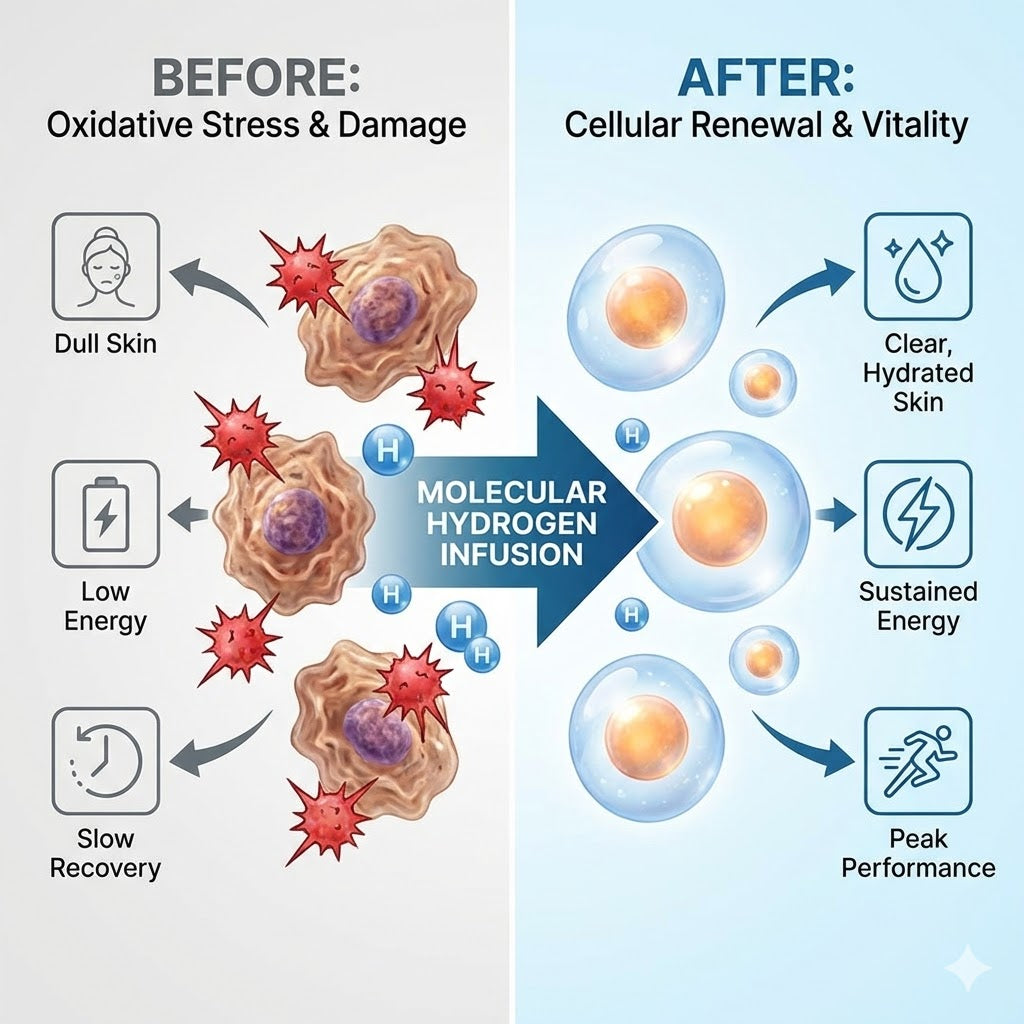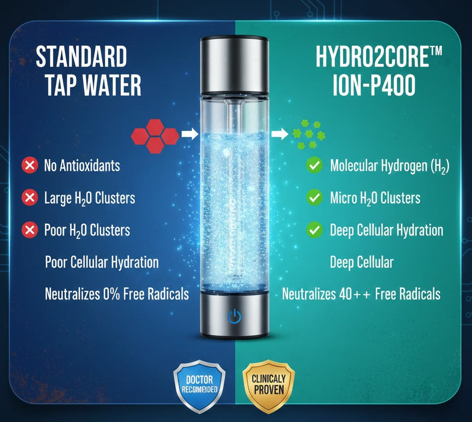 Oxidative stress is the root cause of aging skin, fatigue, and slow muscle recovery. The Ion-P400 infuses water with active hydrogen molecules that are small enough to penetrate your cells and neutralize these harmful free radicals instantly.